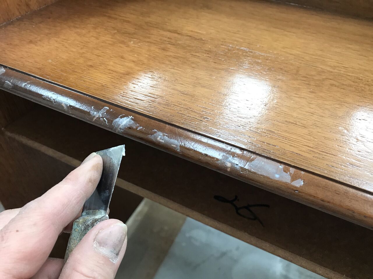 黒のインクのようなものが、木地に染み込んでしまっているようでした。