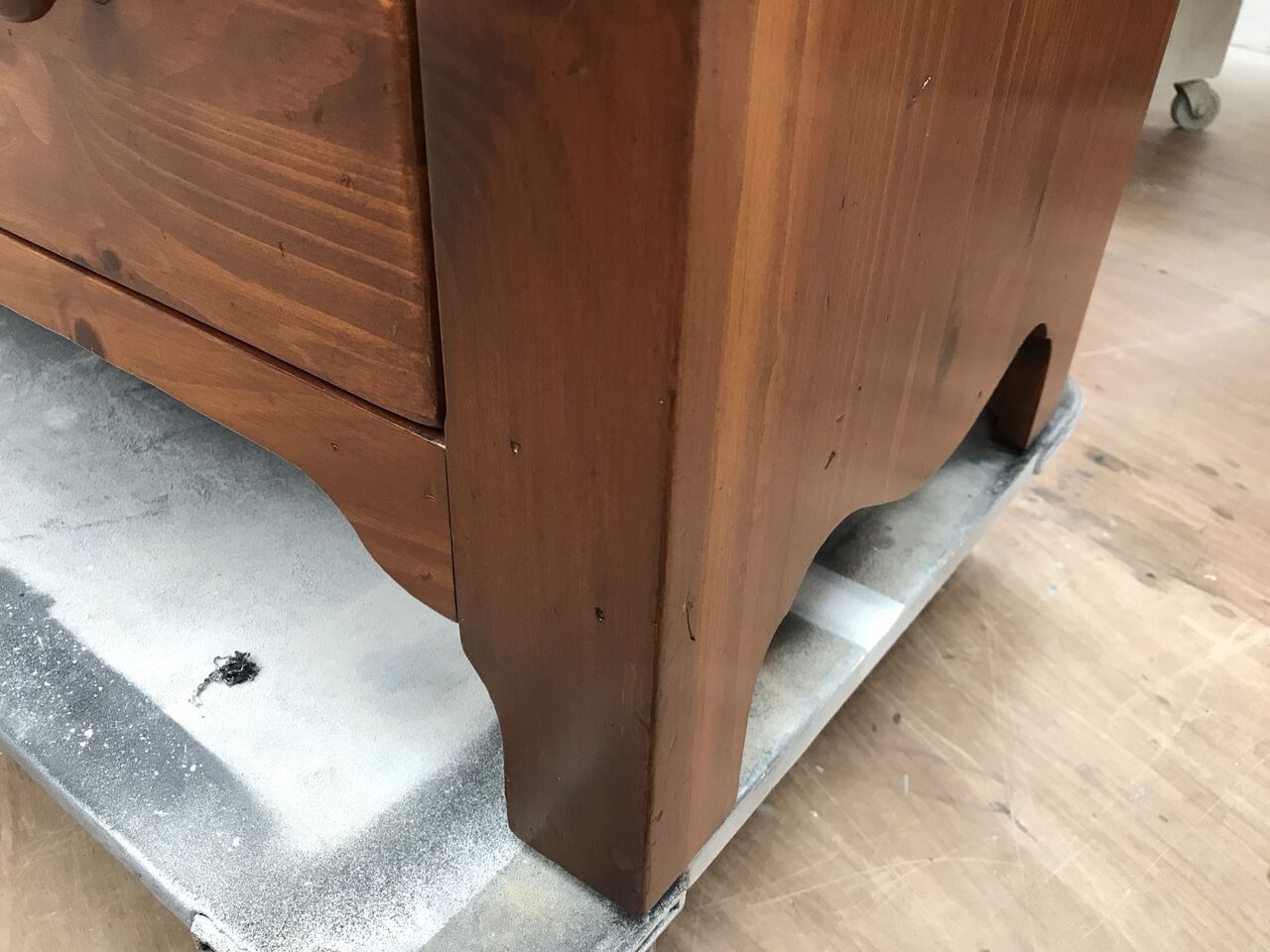 実は、今回お預かりしたチェストはエイジング塗装がされていたのです