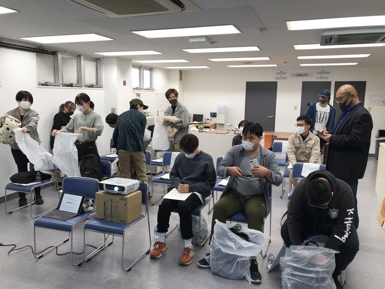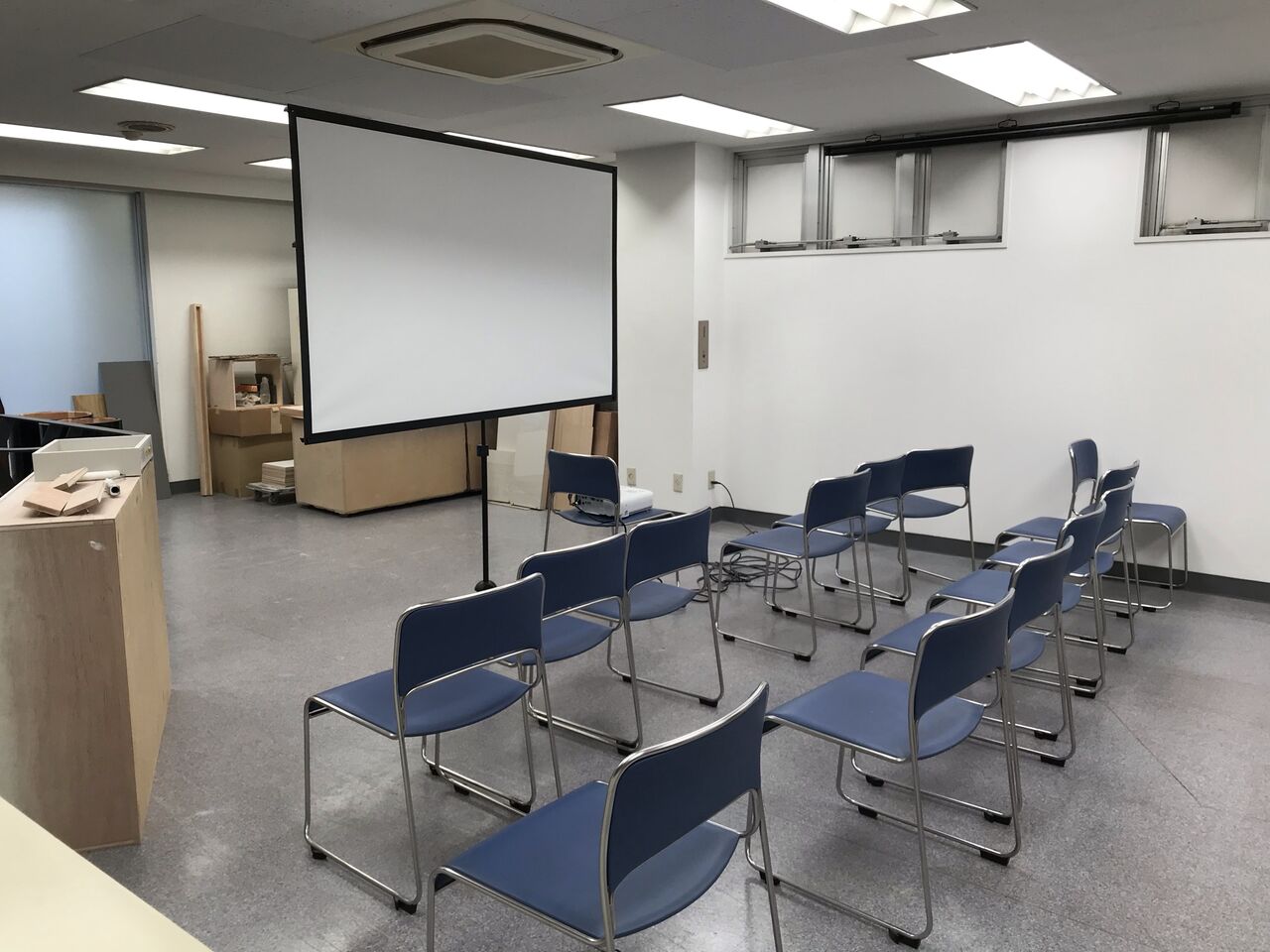3階の倉庫兼事務所スペースには座学を行うための席をご準備いたしました。