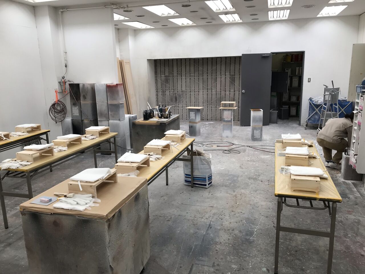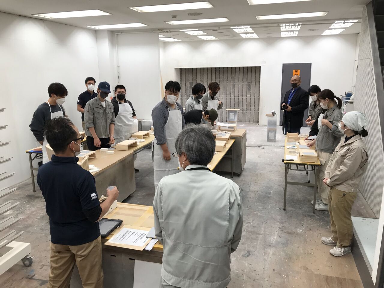 当日は塗装スタジオ1階の作業場に、皆さまに実習を行って頂く為の会場を設営。