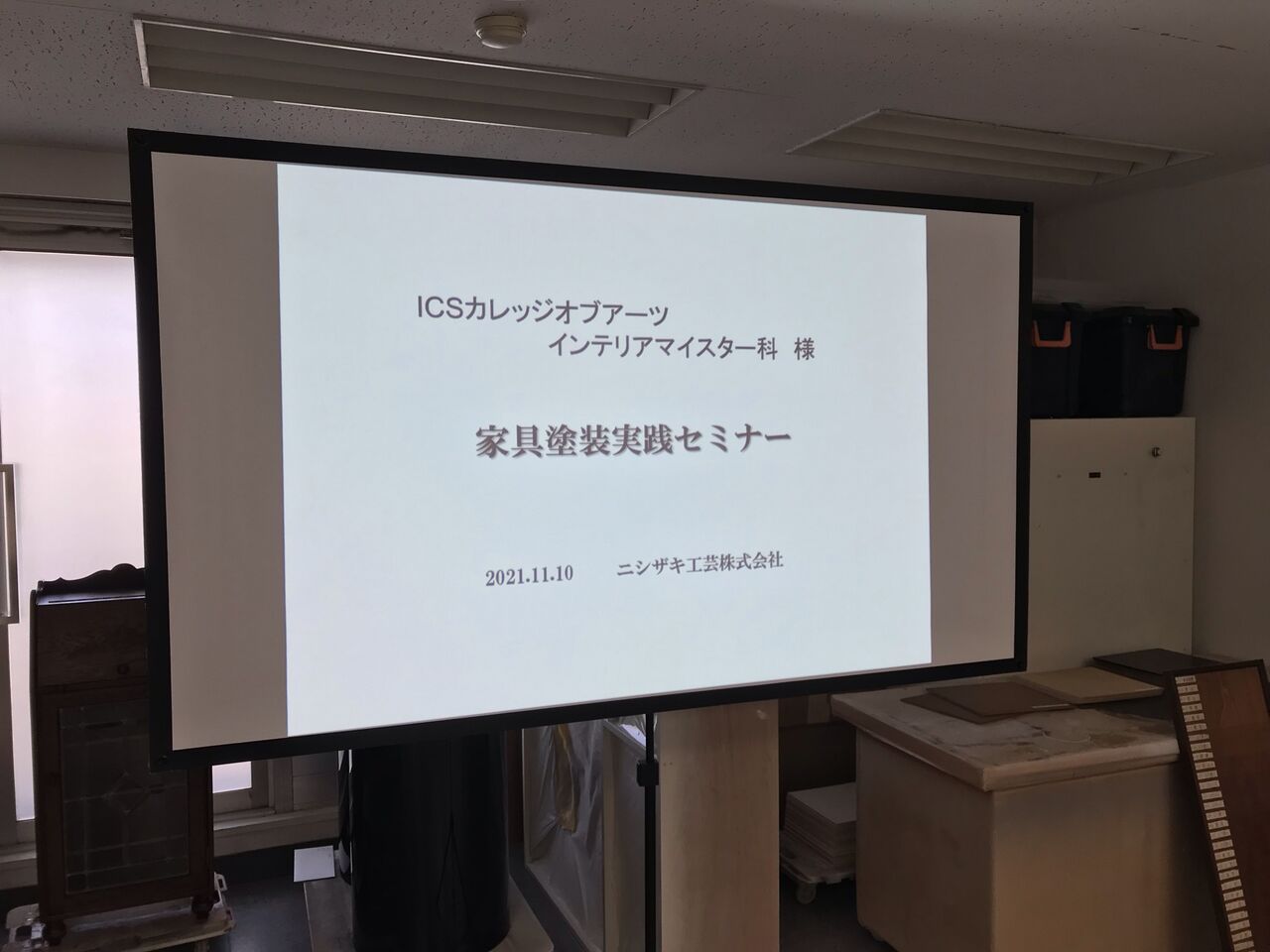去る11月10日(水)、ICSカレッジオブアーツ・インテリアマイスター科の学生さんをお招きして、家具塗装セミナーを行いました。