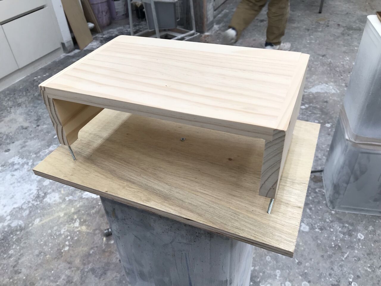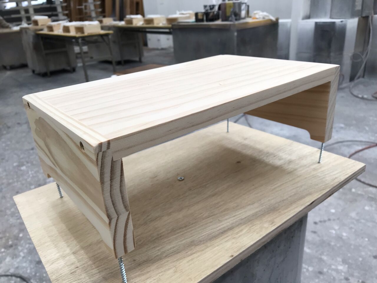 簡単な棚みたいな形のものですが、こちらの形状に木工塗装を学ぶ為の要素が詰まっています。