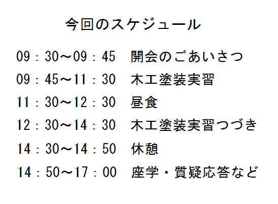 当セミナーは講義と実習を交え、とりわけ木工塗装や家具塗装についての理解を深めて頂く内容となっています。