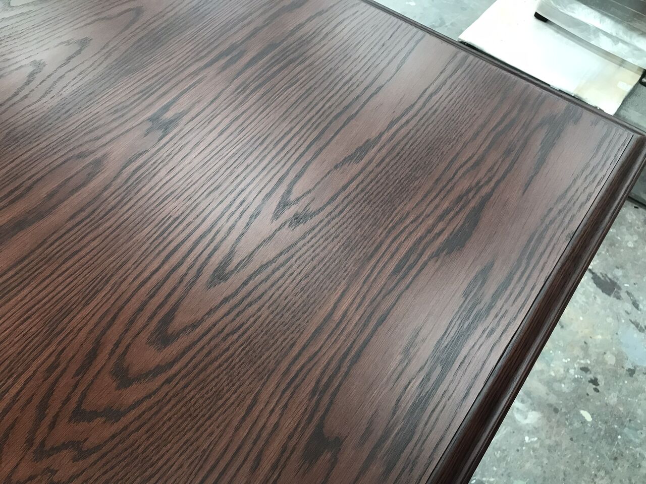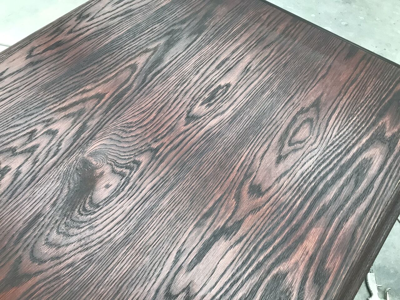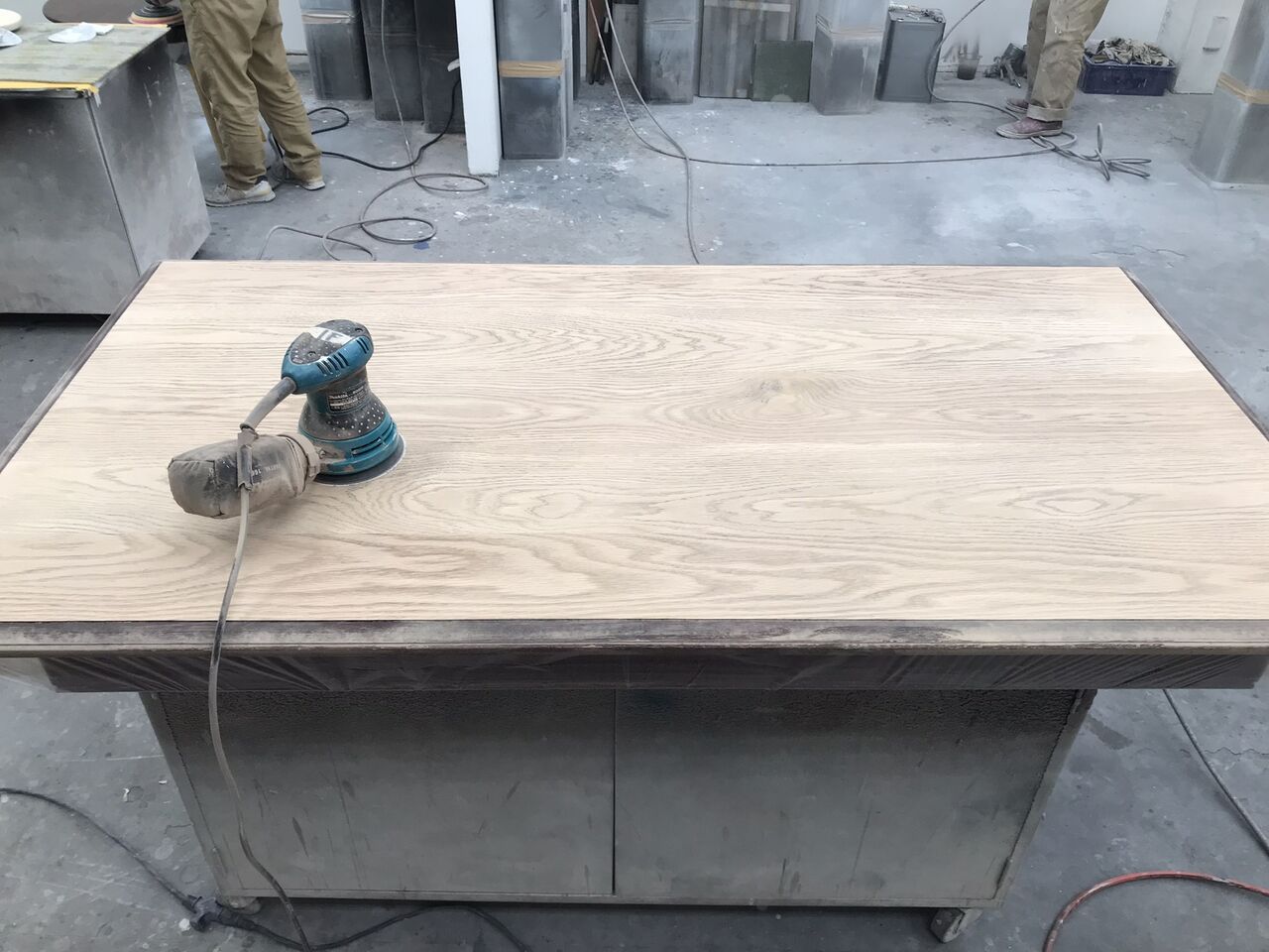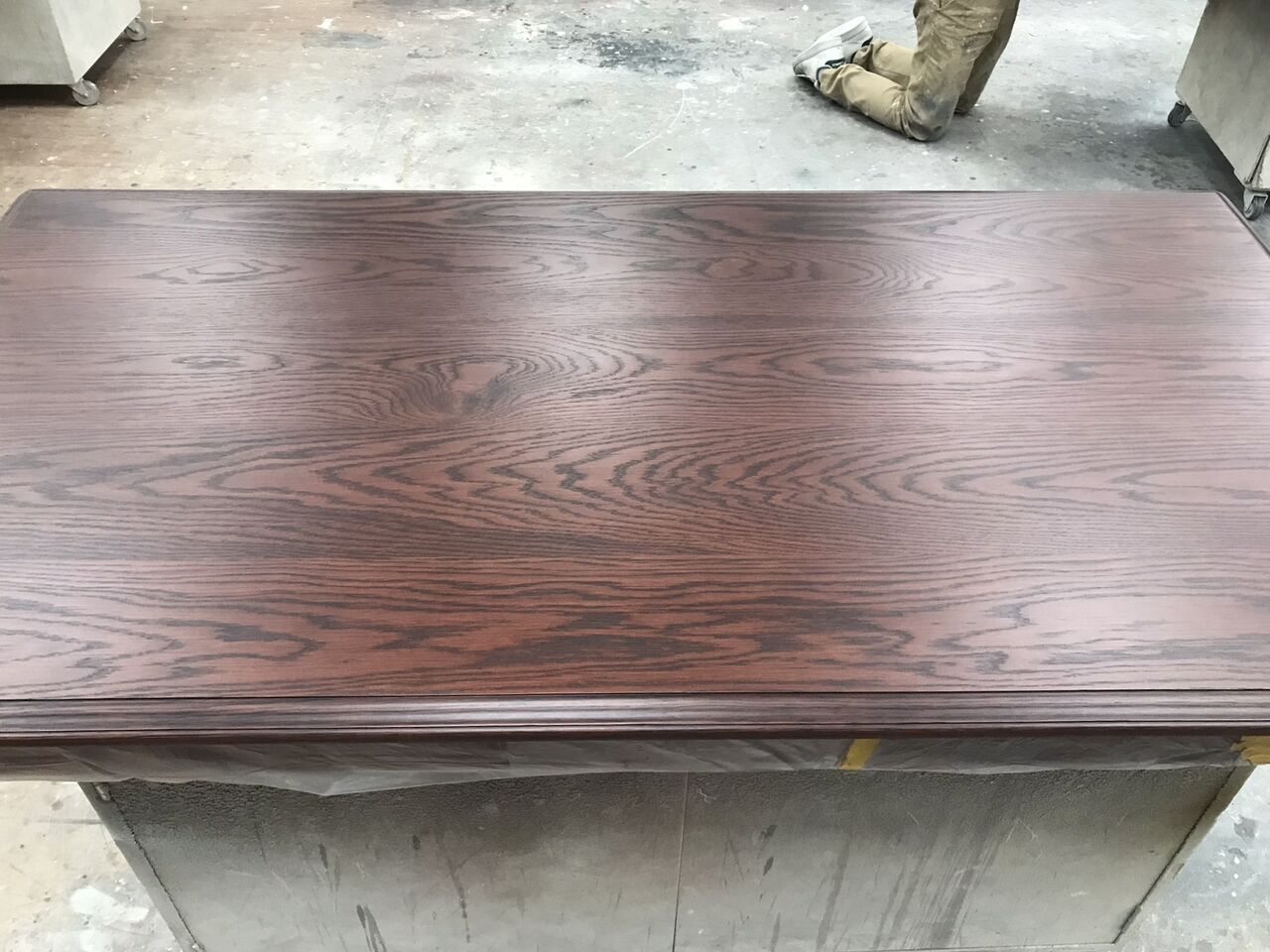 今回は天板のみをお預かりしたので、脚部との違和感がないよう、現状の色合いや雰囲気に近づけるように作業を行います