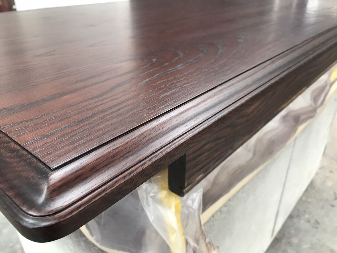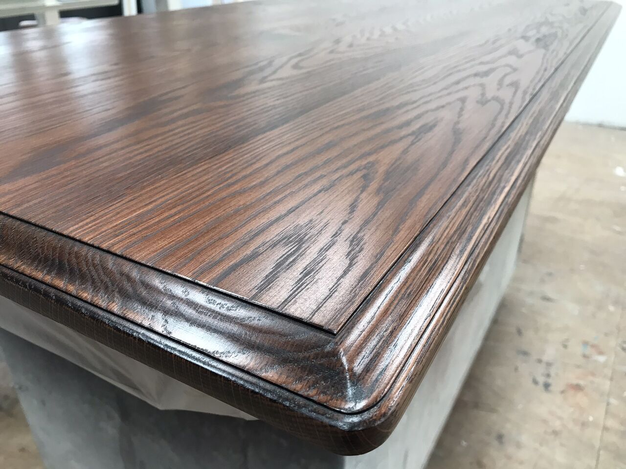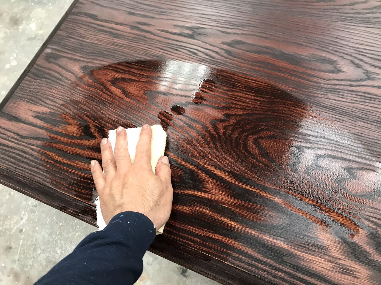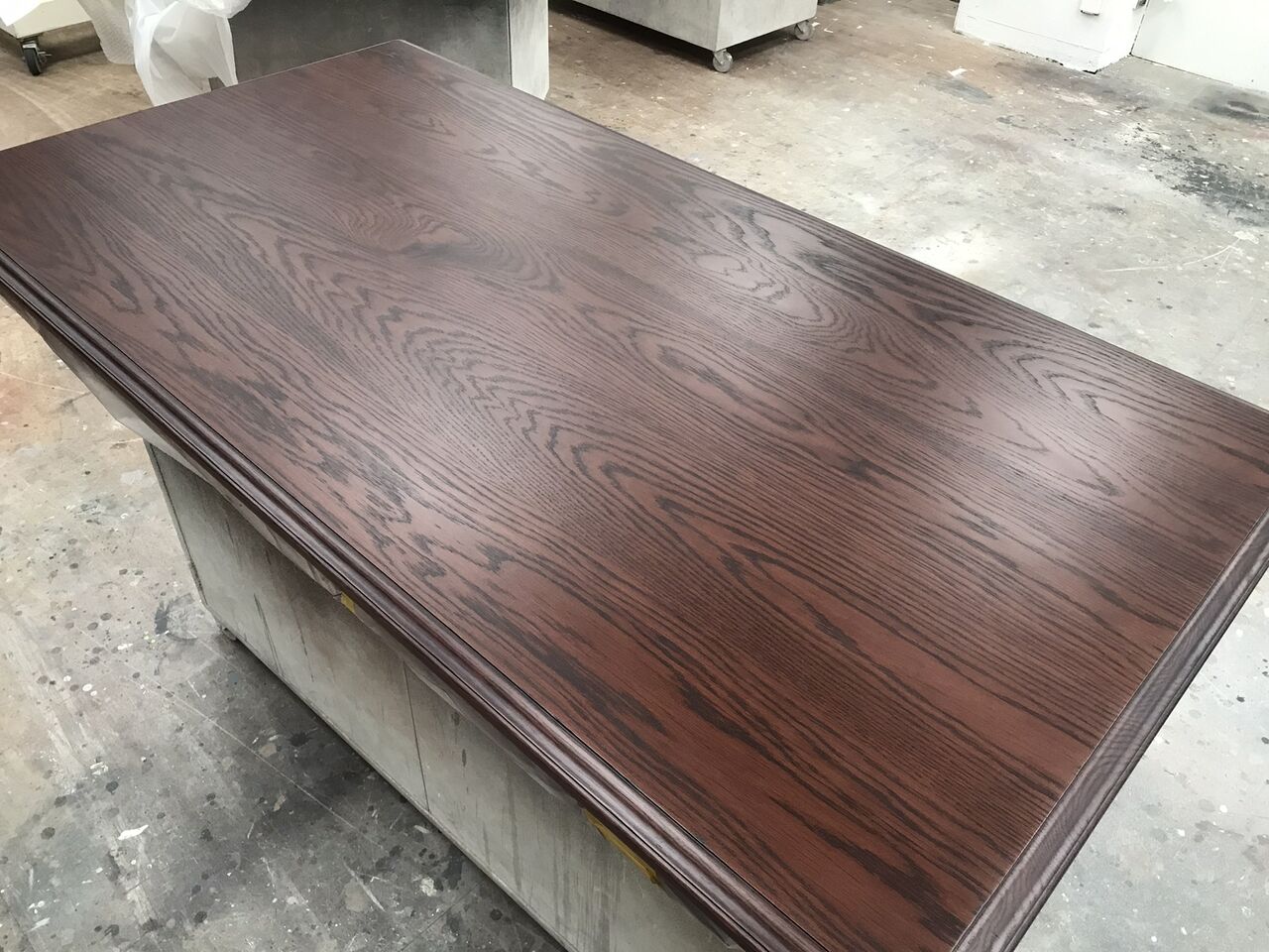 今回は天板のみをお預かりしたので、脚部との違和感がないよう、現状の色合いや雰囲気に近づけるように作業を行います