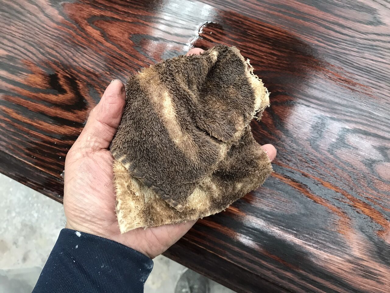 お客様のご要望は「色落ちせず、汚れても簡単に拭き取れる塗装に塗り替えて欲しい」ということでしたので、耐久性の高いウレタン樹脂塗装に塗り直します。