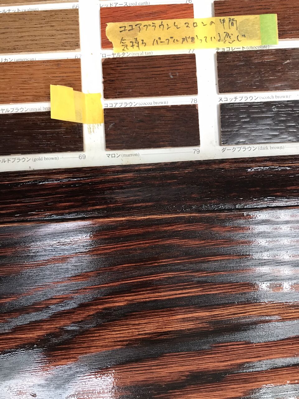 ブラウン色に調合されたカラーオイルが塗布されていました。