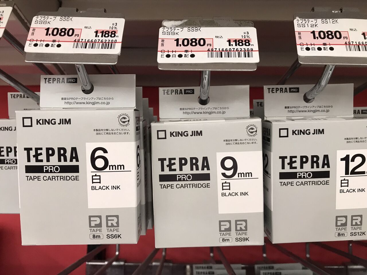 売り場上段にはそれらに対応するテープカートリッジが吊り下げてありました。