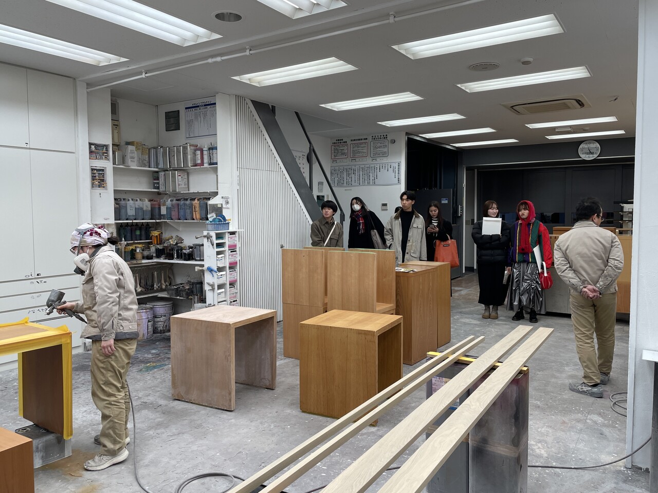 家具塗装の様子も見学して頂きました。