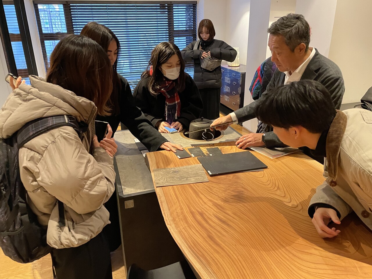 折角なので、森下文化センターでの家具塗装セミナーを終えた皆様には、弊社ショールームと塗装スタジオも見学して頂き、特注家具や家具塗装についてより理解を深めて頂きました。