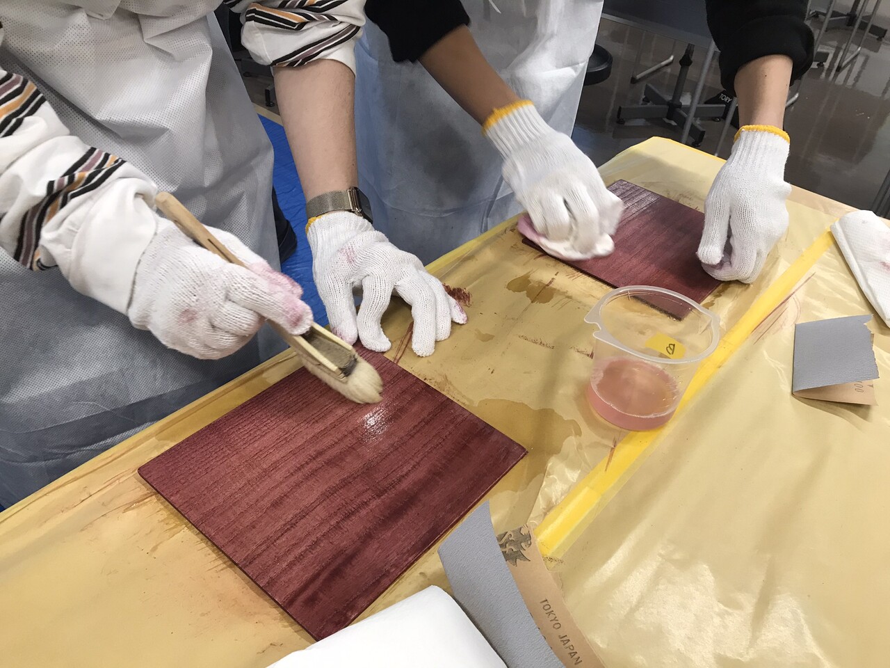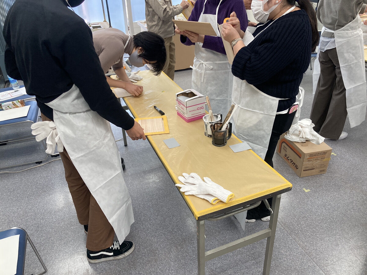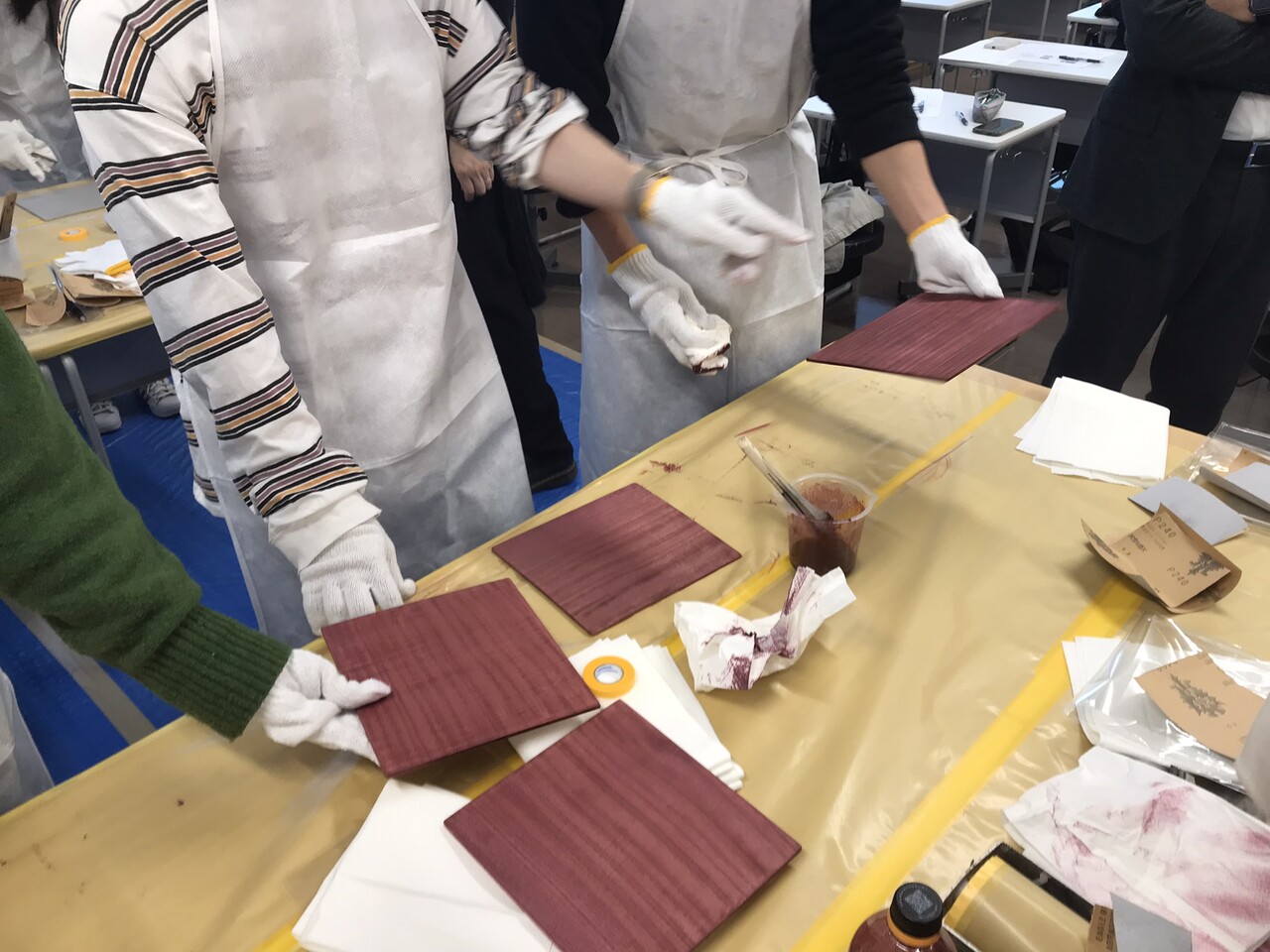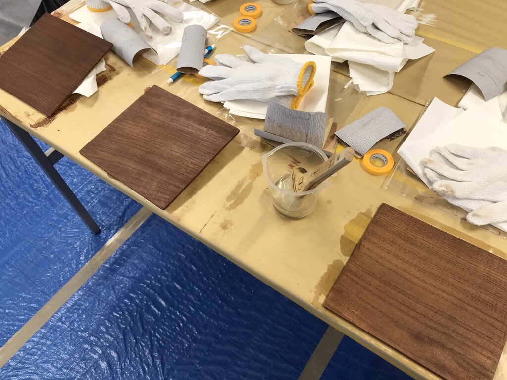 一つの会場で、木工塗装に関する知識を学び、実際に塗装作業を体感してもらいました。