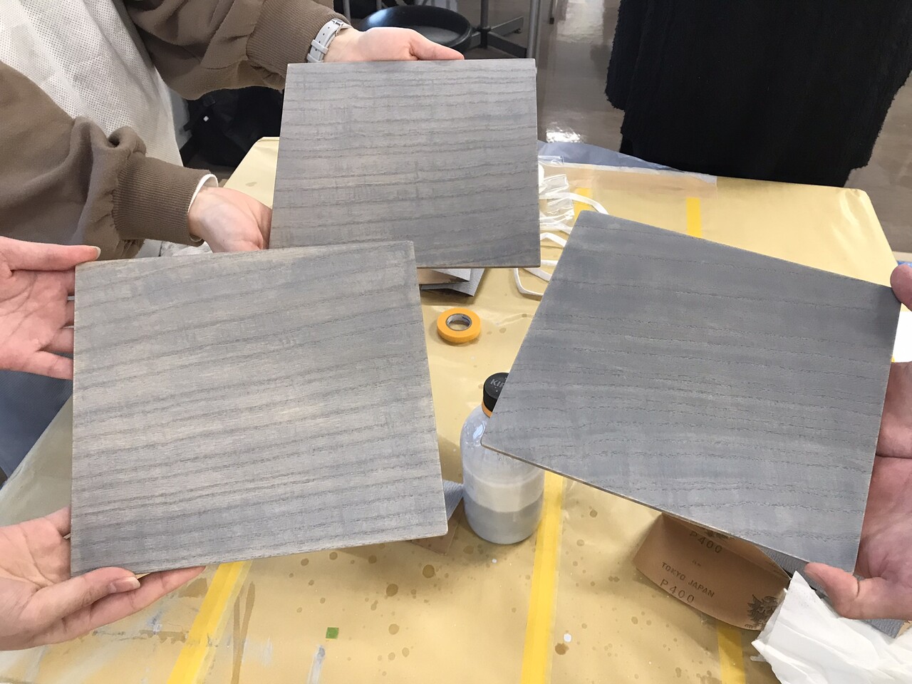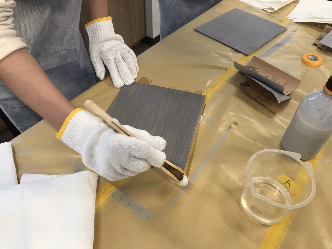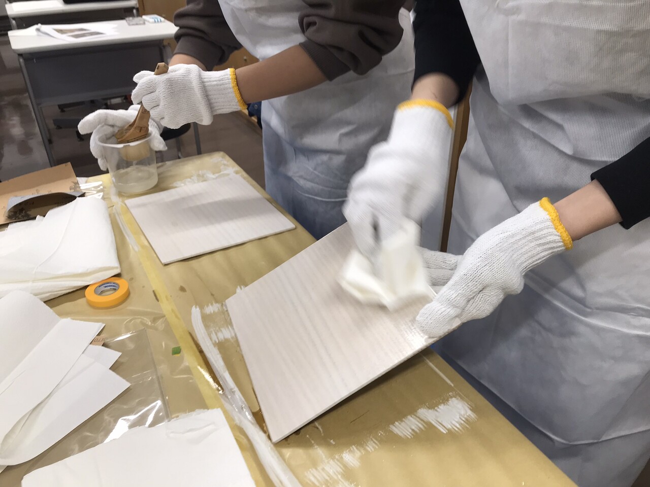 一つの会場で、木工塗装に関する知識を学び、実際に塗装作業を体感してもらいました。