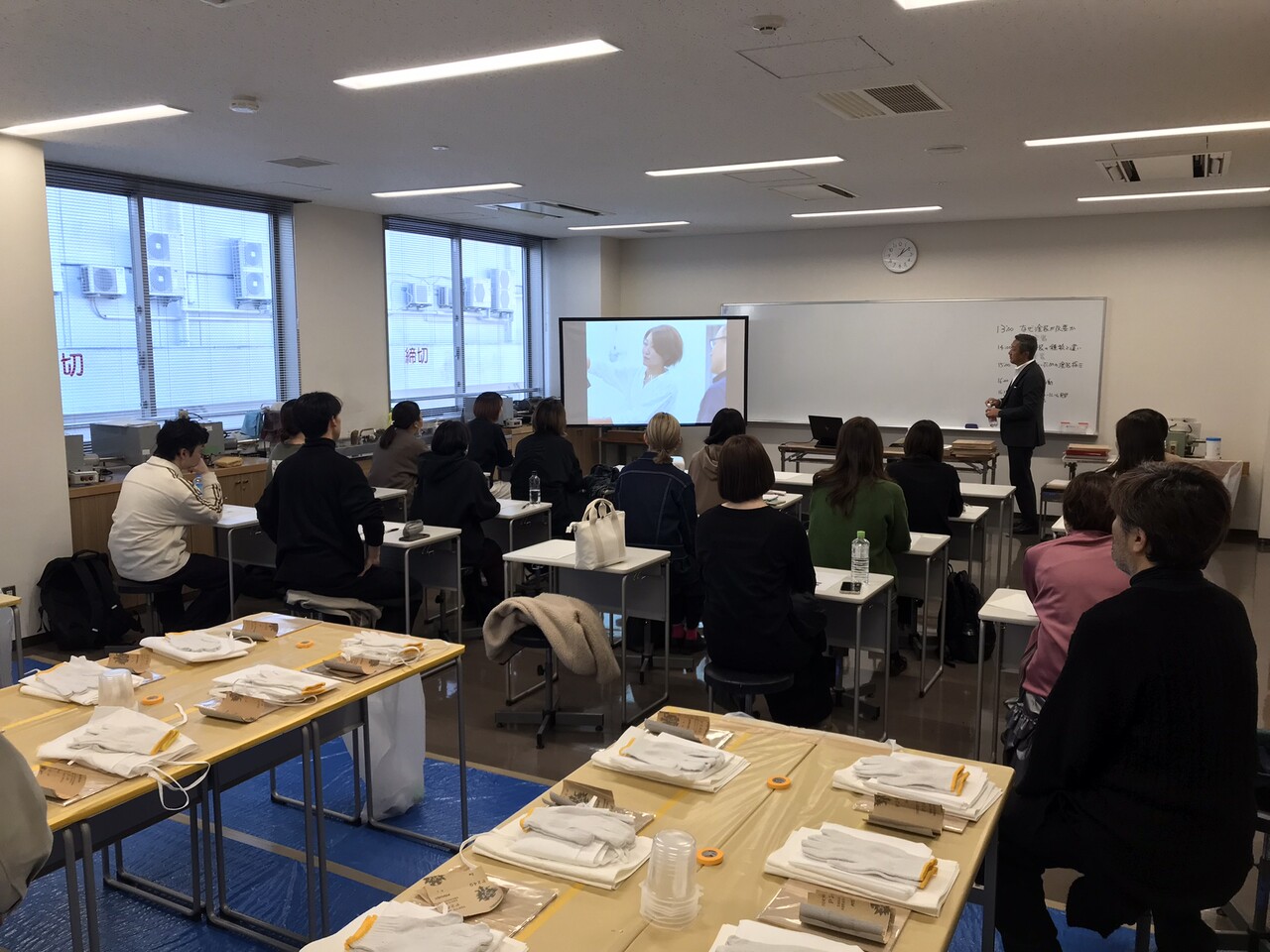 会場内を2つのコーナーに分けて、前側では“座学”を、後側で“実習”を行いました。
