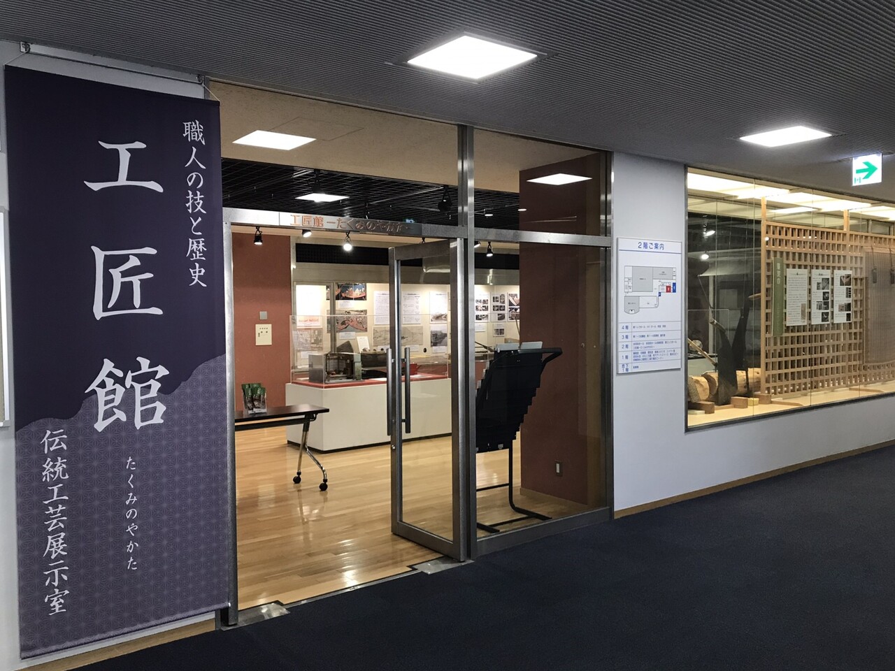 こちらには研修室や会議室、ホールなどの貸出施設のほかに、“工匠館”と呼ばれる東京の伝統工芸(江戸指物や漆塗り)を紹介するコーナーがあるのですが、こちらが結構面白いです。