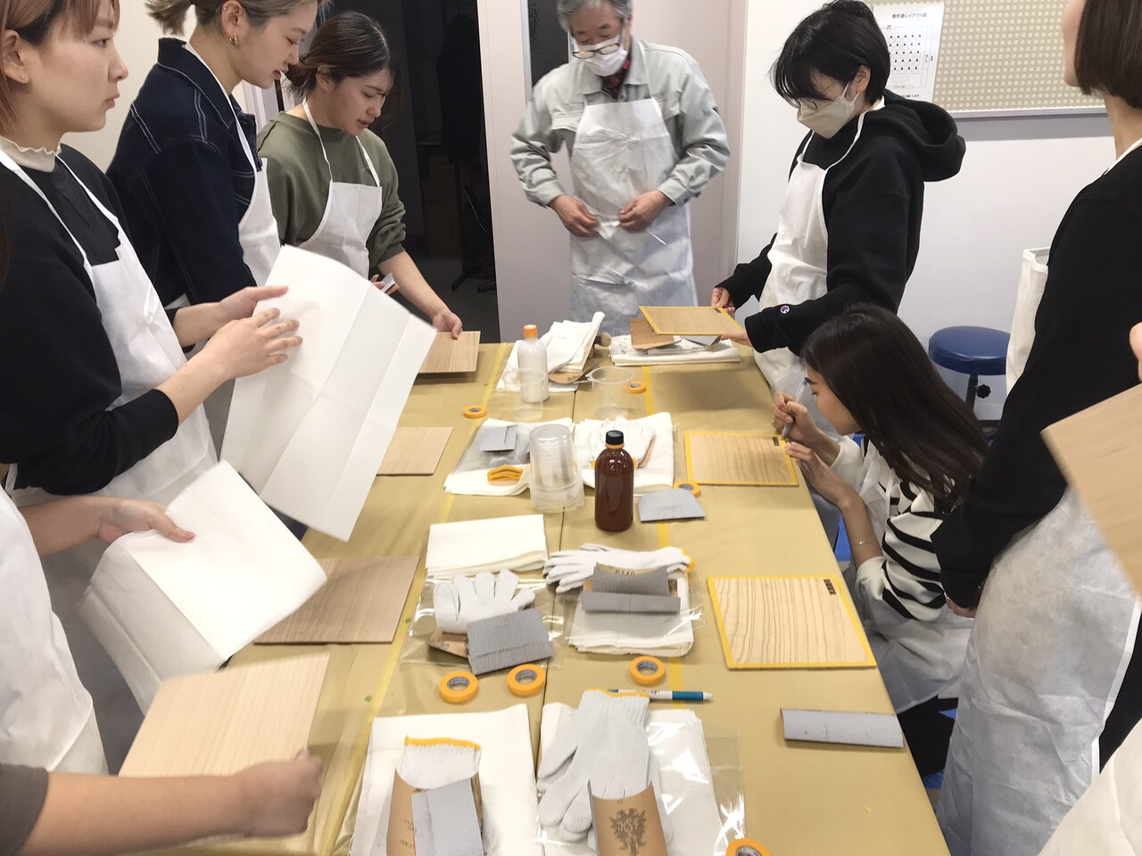 写真奥に写っているのが、木工塗装のスペシャリストの矢島浩之先生。