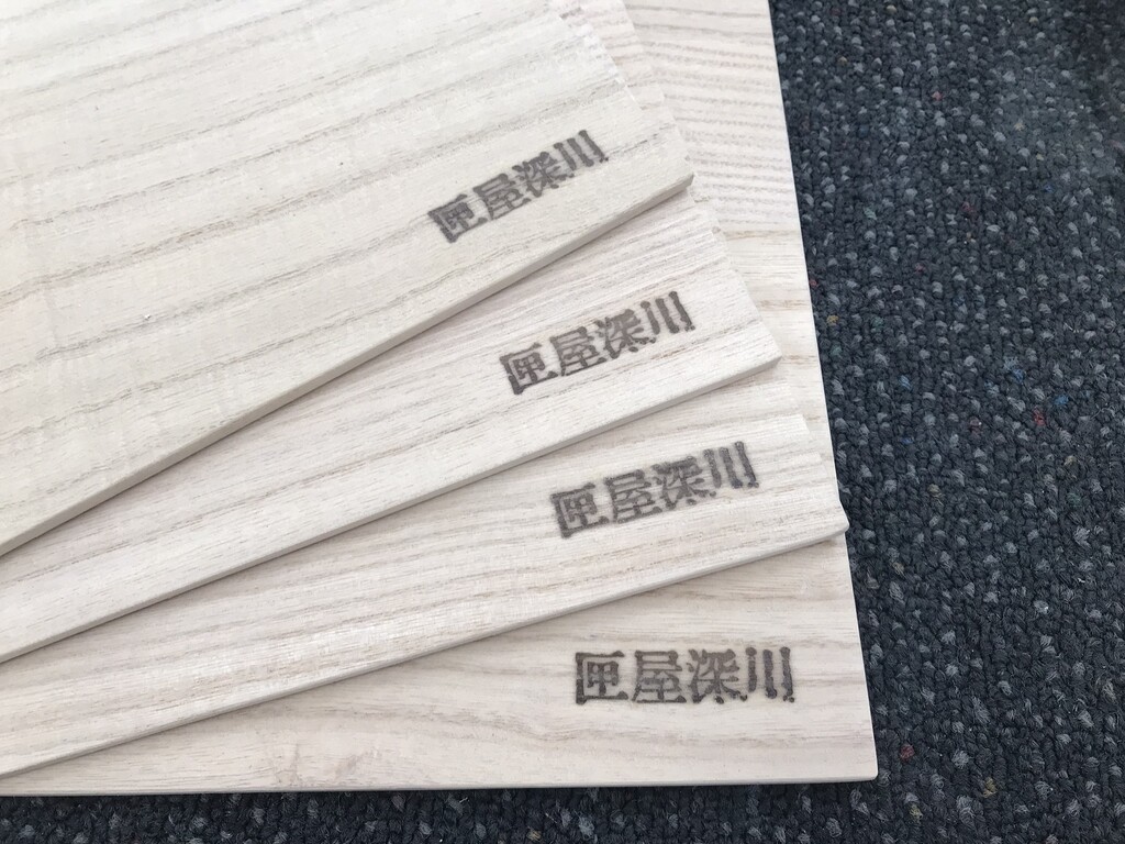 裏面の右下に押してある焼き印「匣屋深川(はこやふかがわ)」は弊社のロゴであります。