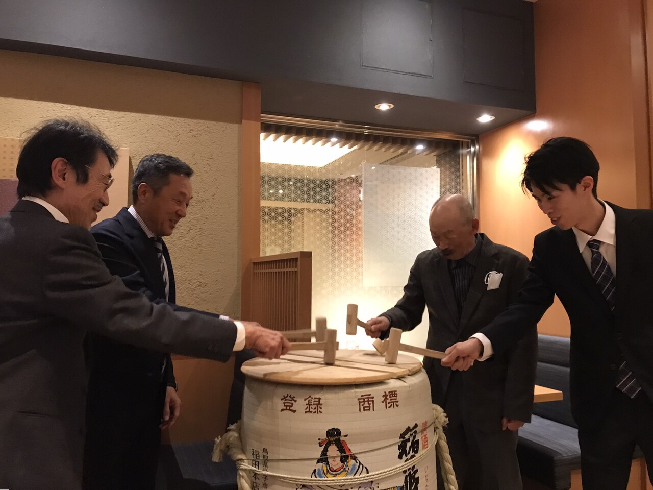 店内で樽酒を囲んで、本格的な鏡開きも出来て良かったですよー