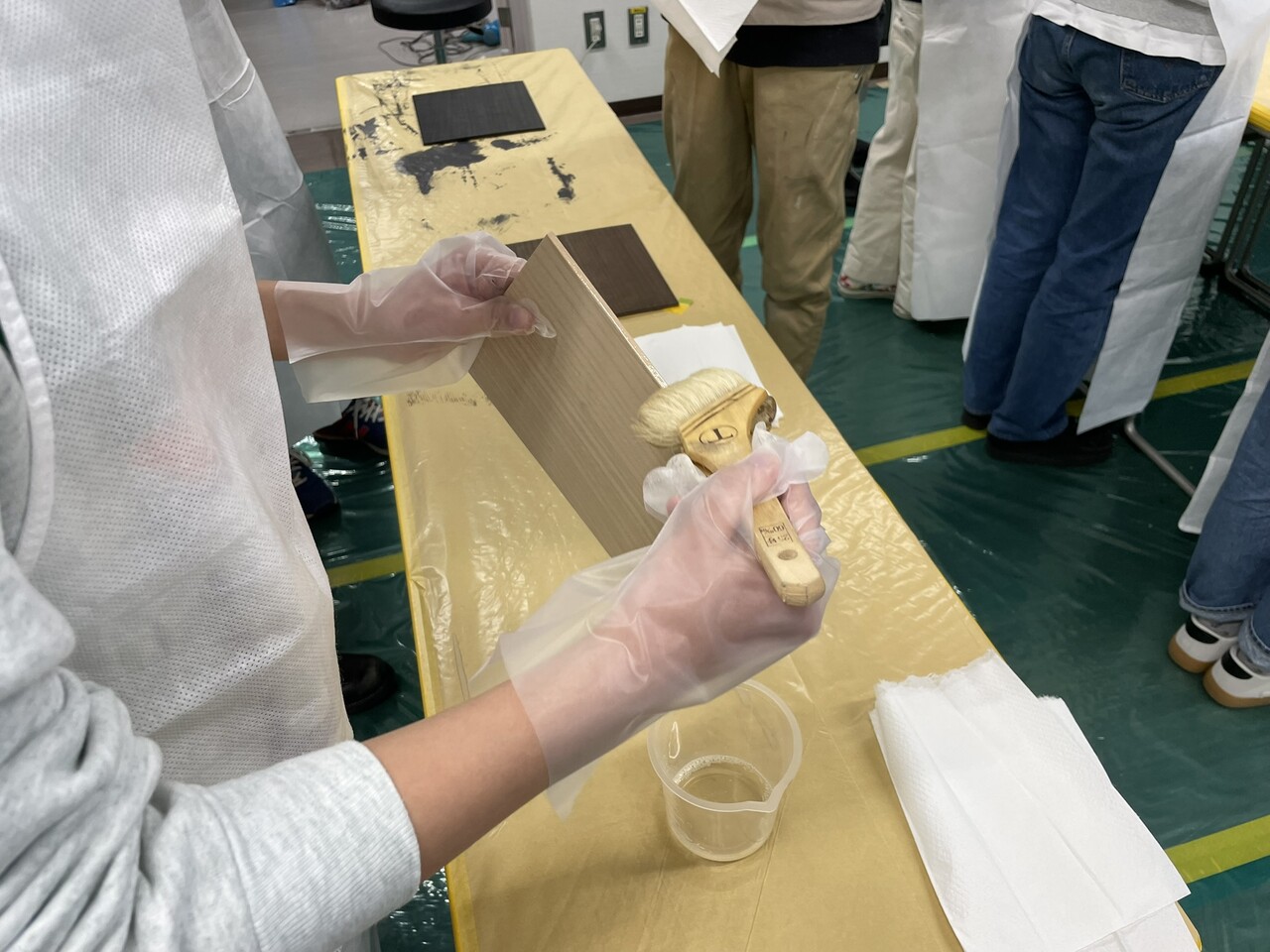 当セミナーでは、特注家具や木工塗装に関する知識を学びつつ、実際に塗装作業を体感してもらうことで、より理解を深めていきます。