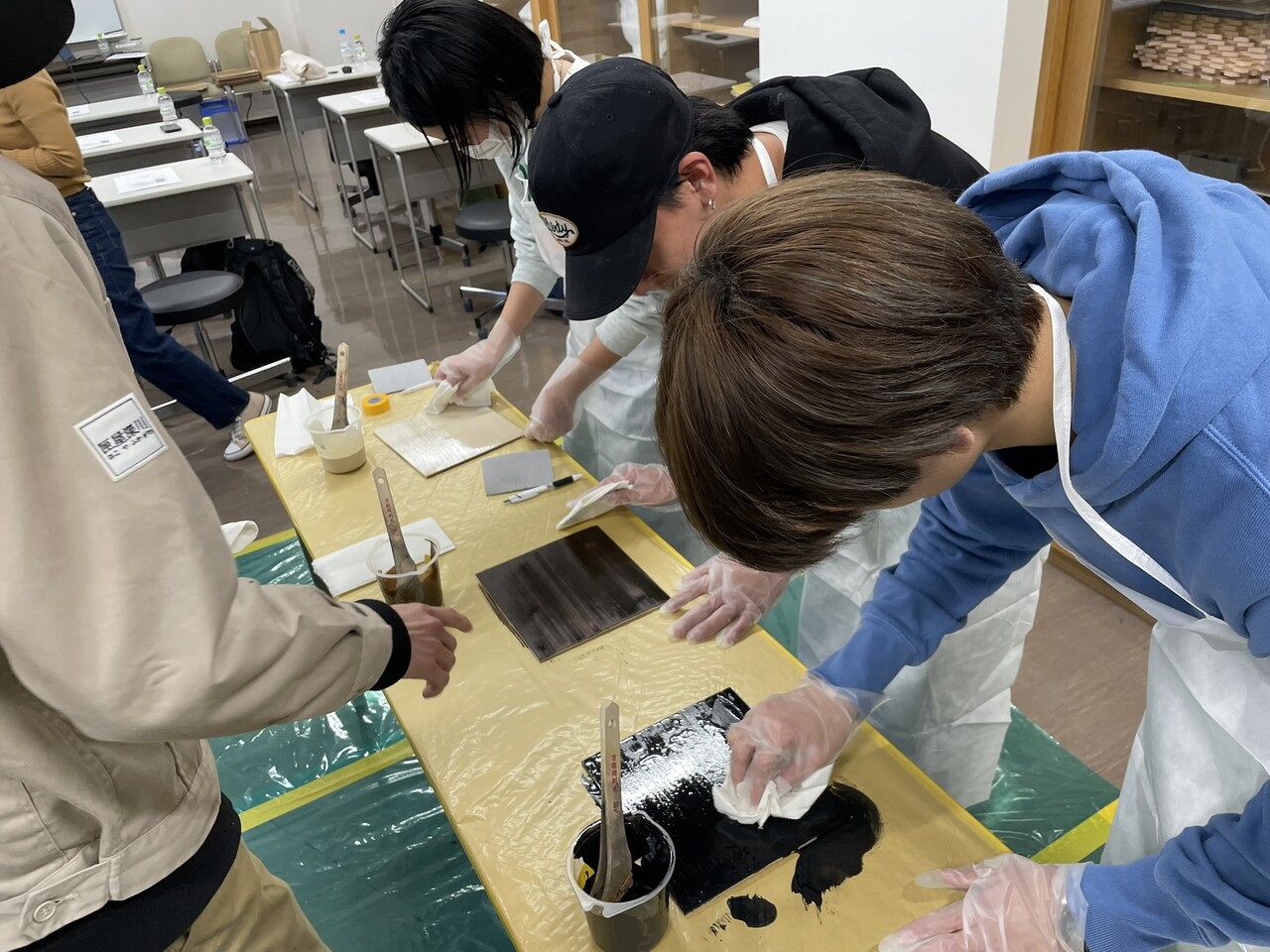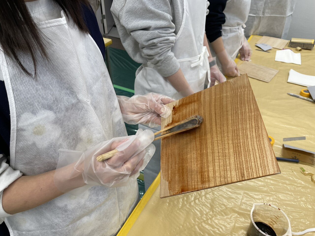 塗装部のスタッフがレクチャーさせて頂き、皆様に木工塗装を体験してもらいます。