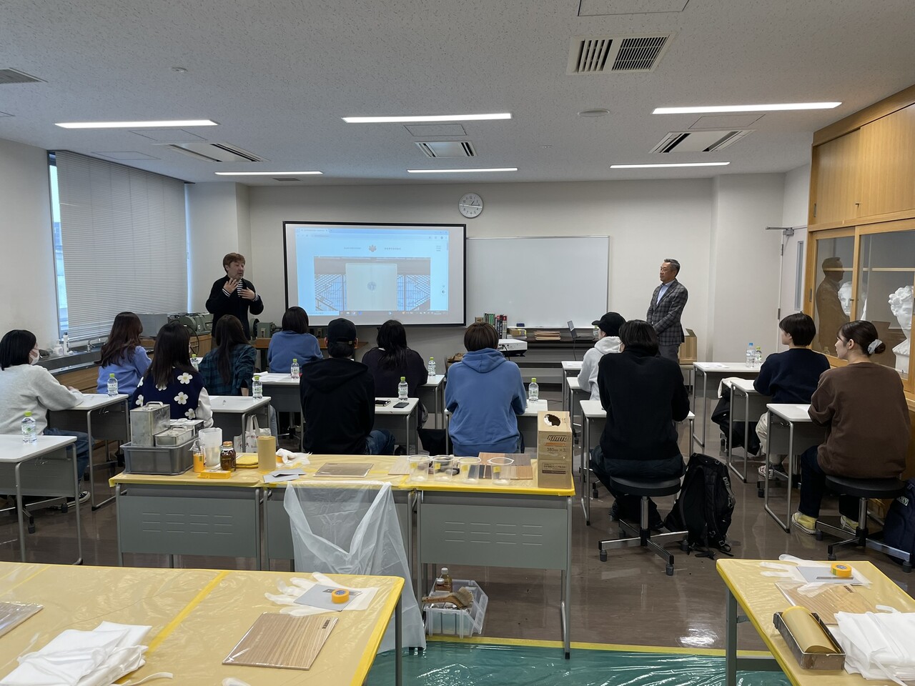 ここ数年、毎年始めに、こちらの学生さん達へ特注家具や木工塗装についてレクチャーさせて頂いており、弊社ではすっかり恒例の行事になっております。