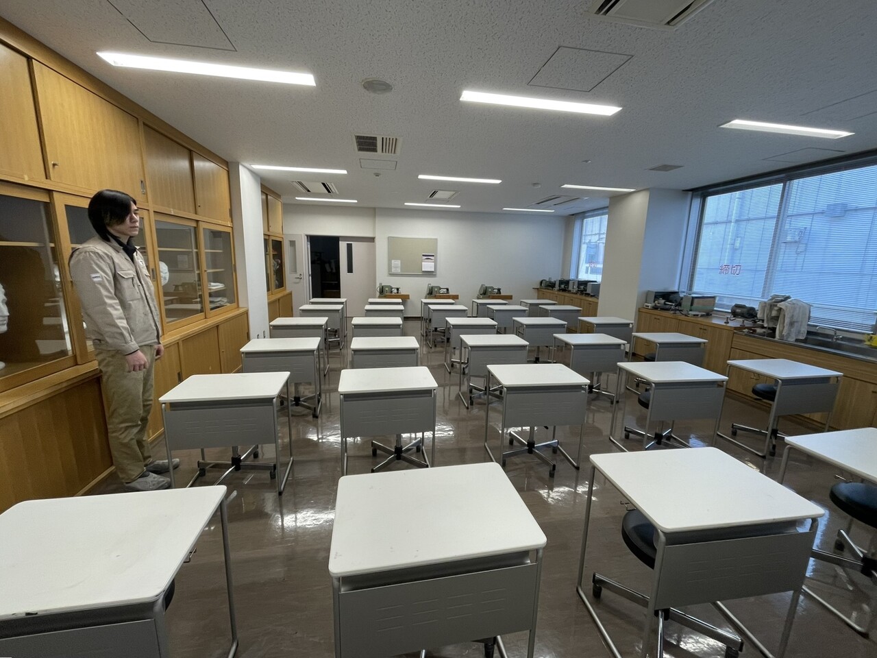 教室を前後に2つ分けて、前側では“座学”を、後側で“実習”を行いました。