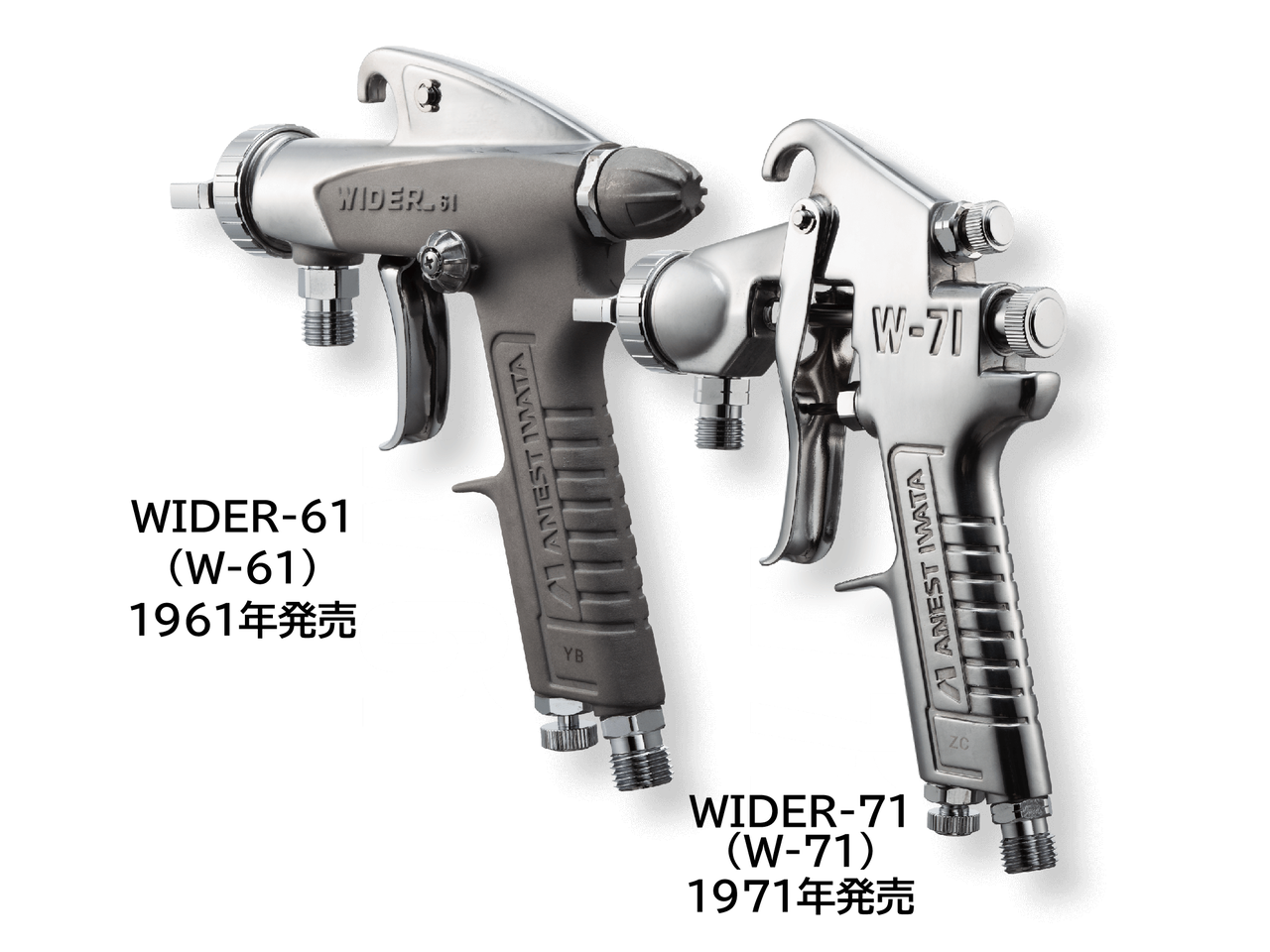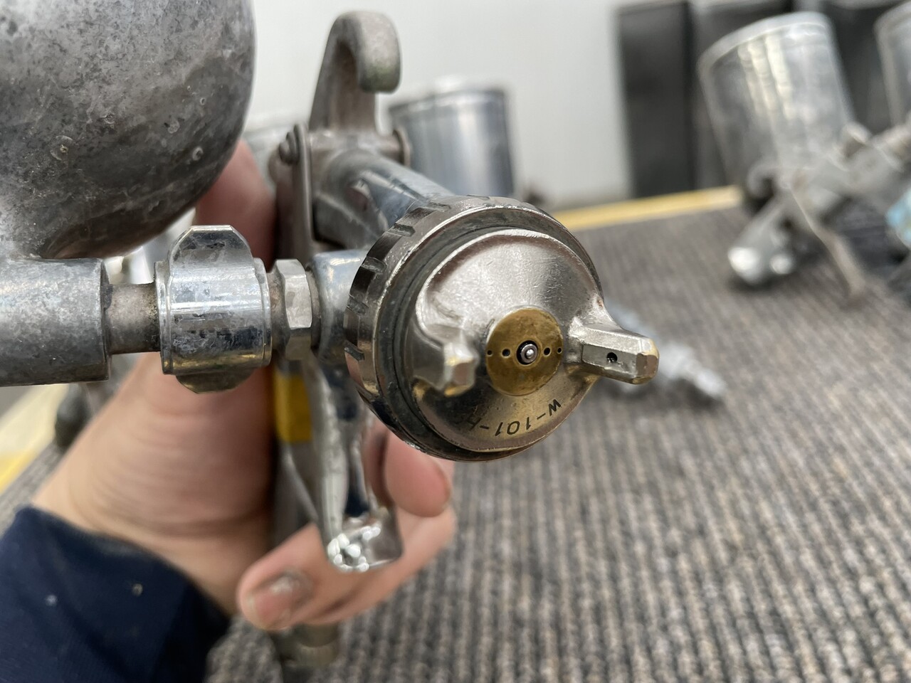 こちらのスプレーガンはアーネスト岩田株式会社製(旧岩田塗装機工業株式会社)の「WIDERー101(Wー101)」という機種です。