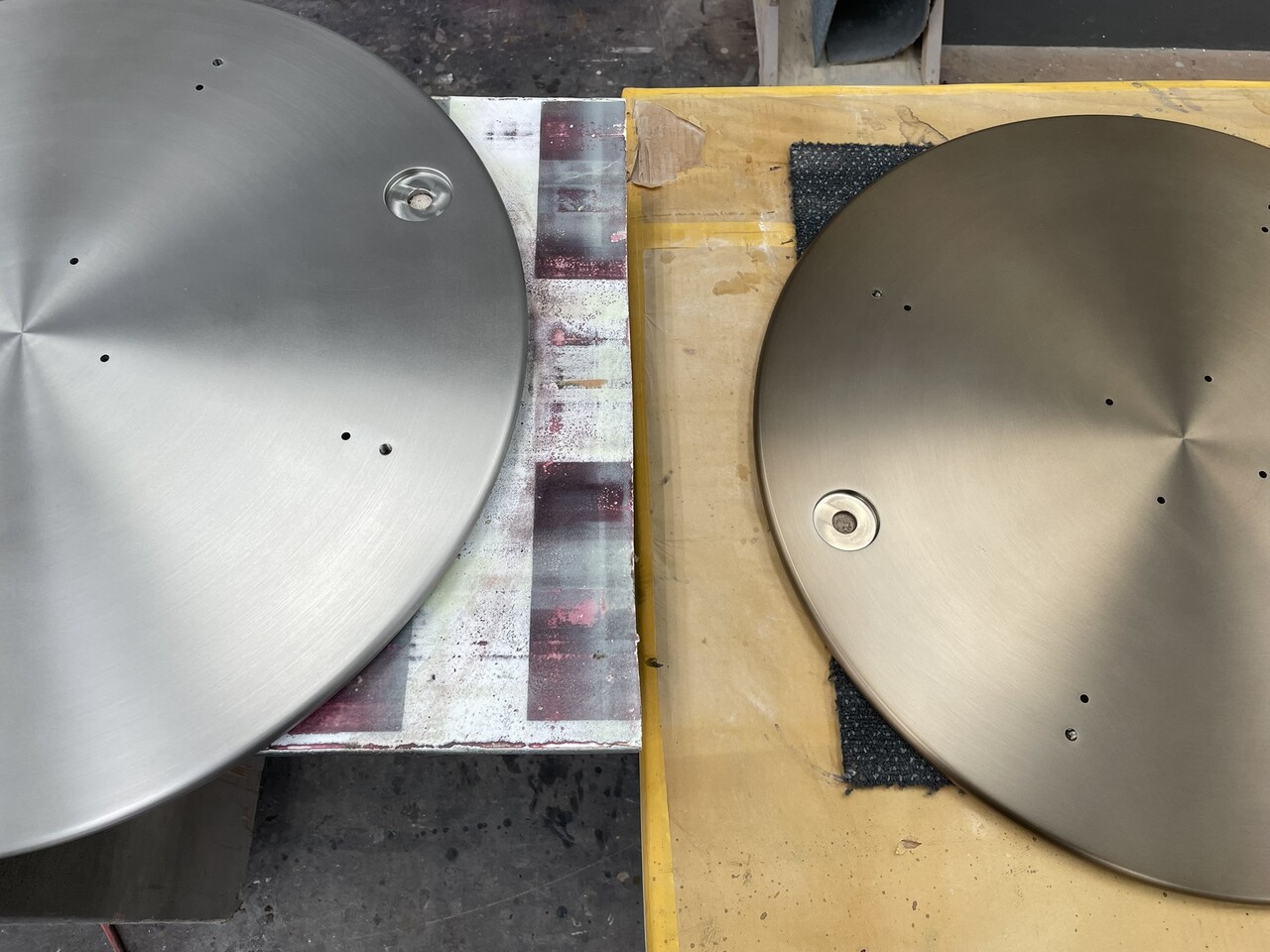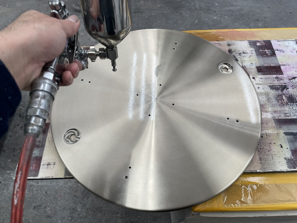 先日、F111で金属板に色を付ける仕事したので、最後にその様子をご紹介しましょう。