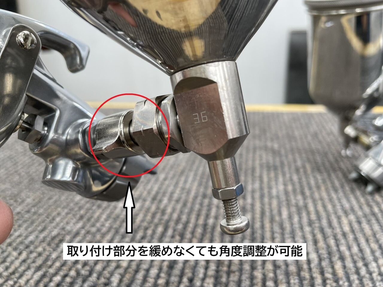 頻繁に塗料カップの角度をしながら塗装する場合にとても重宝しますね。