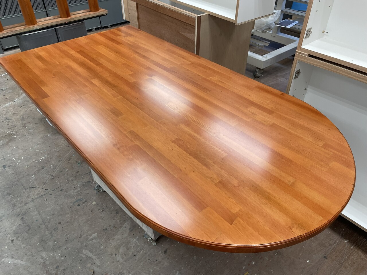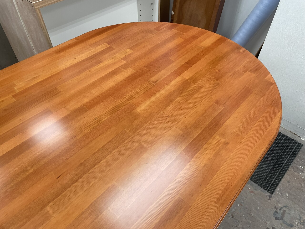 集成材で製作された、一般的な既製品(市販されている)タイプのものですが、片方がアールになっているこの様な感じのものは、探してもなかなか無いですよね。