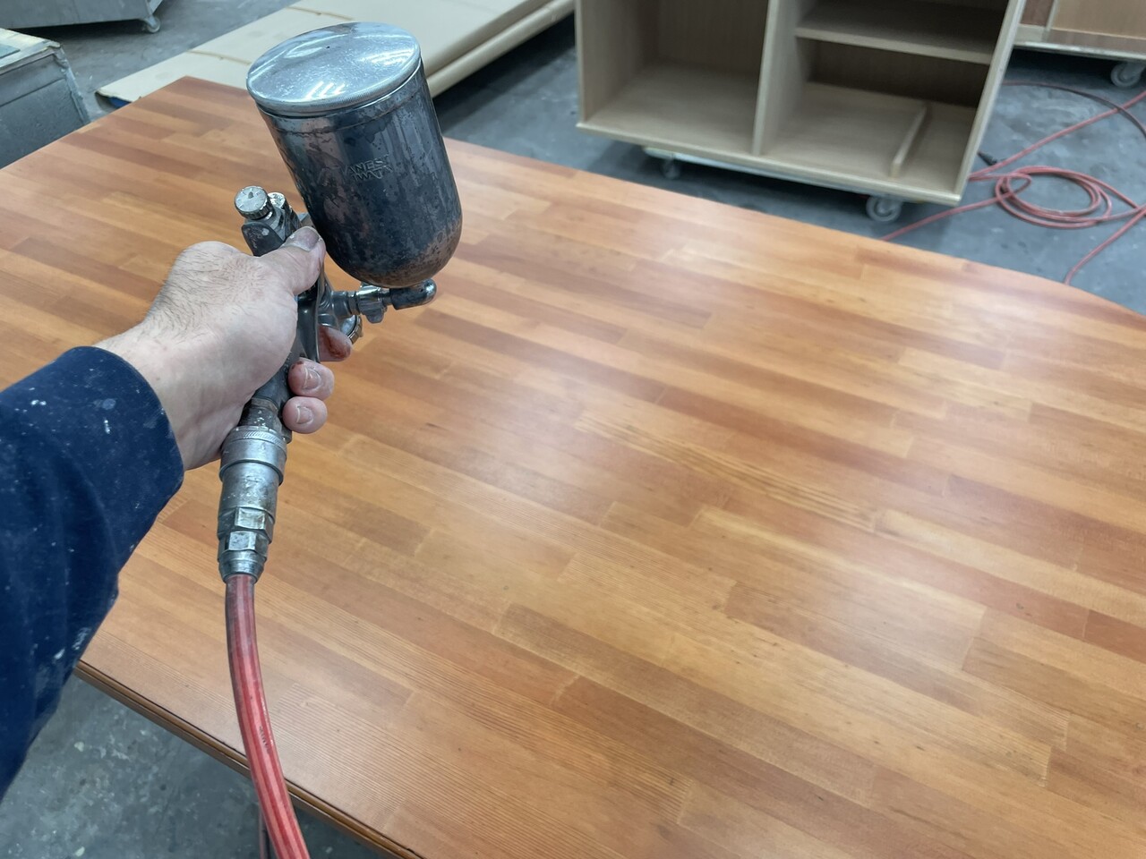 弊社塗装部では、自社の木製品(特注家具など)の塗装をメインにお仕事をさせて頂いております。