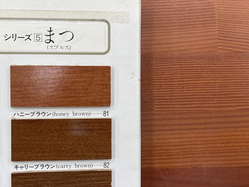 うーん・・・ウッディーワールドという色見本帳の81番「ハニーブラウン」という色が近いですね。