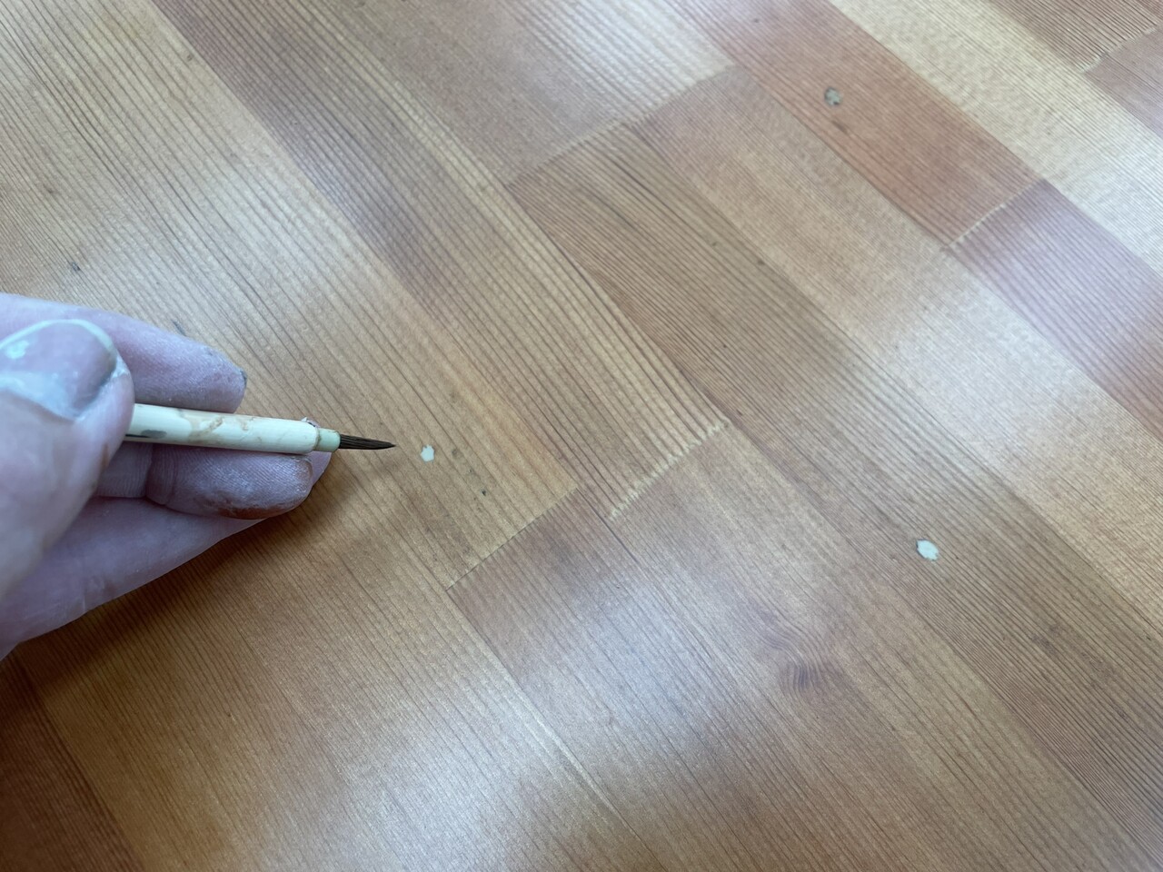 成型した部分に筆で木目を描いて、周りと馴染ませていきます。