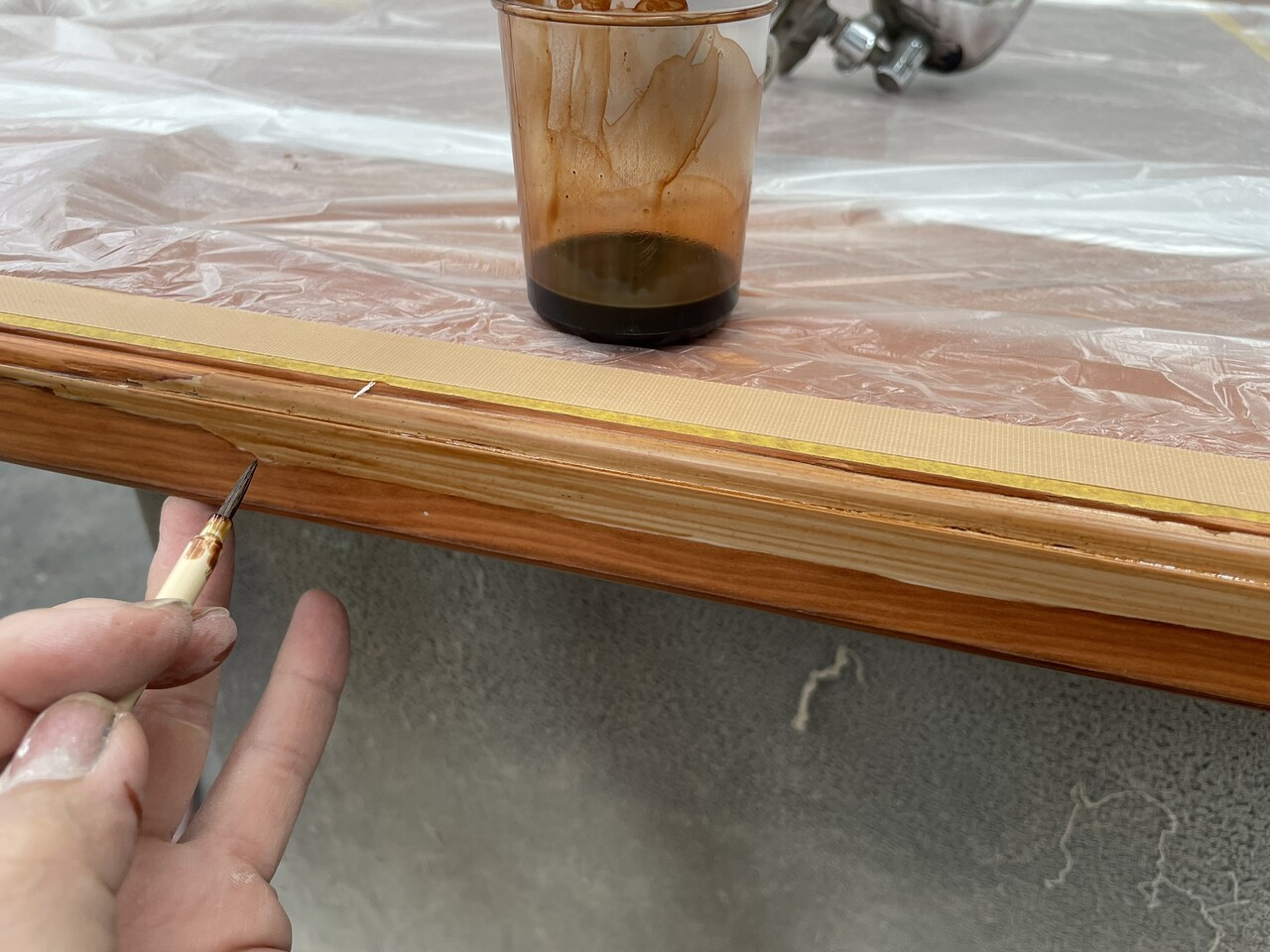 透明塗料を塗り重ねて仕上げていきます。